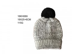 2016 NEW FASHION 100%ACRYLIC ICELAND WOOL KNITTED HAT WITH FOLDED AND YARN POM POM