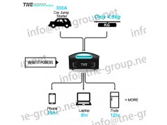 TNE-UPS boasts triple output modes: a 12V car socket, an 110V AC outlet and 4 fast-charging USB ports