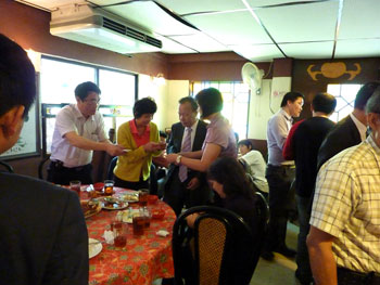 Singapore and china enterprises exchanged business cards.