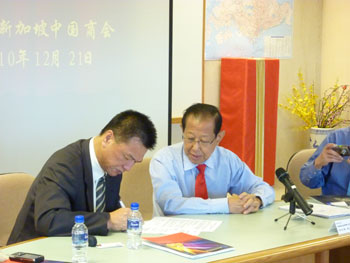 Signing on ceremony held formula: in the "Singapore Chinese Chamber of Commerce, China - ASEAN free trade website " cooperation agreement was signed by chairmans Xu & chairmans Li,