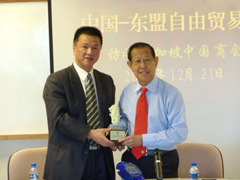 " China - ASEAN free trade website "present a gift in return to Singapore Chinese Chamber of Commerce with Commerce Gift