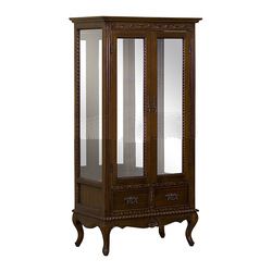 Mahogany Glass Doors Display Cabinet with 2 Drawers