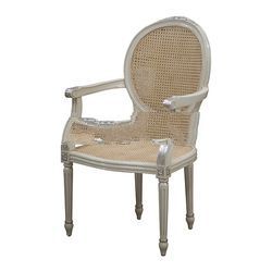 Silver and White Painted Chair with Rattan