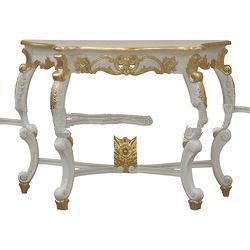 White Painted with Gold Trim Carved Console Table