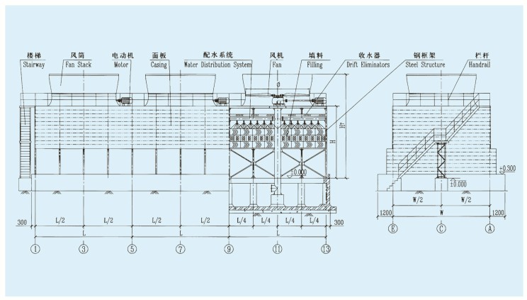 Industrial tower: Air wet- bulb temperature τ=28℃. Cooling tower temperature drop: 10~25℃.