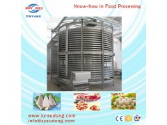 Description:Self-stacking sprial freezer is a kind of spiral freeze without tranditional rail support, the top belt supports by the bottom belt, its own support structure for compact building dimensions. Self-contained freezing zone, with benchmark hygiene (100% air flow), high efficency and lower consumptions advantages, reliable and less maintenace realized comes from high quality of Aerospace technology; continous producing creates by comprehensive cleaning system-lower consumption of water, energy and chemicals. So it is more suitable for meat balls, fish balls, sausage, Spring rolls, chicken wings, legs, etc.