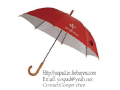 Description:23"*8K*10K Straight Auto Open Advertising Umbrella,Promotional Umbrella Fabric: 190T Polyester with Silver Coating Frame: Metal Fluted Ribs & Metal Shaft Handle: Plastic Curved Handle