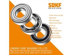 Description:SDKF Description: E:sam[at]sdkf-bearing[dot]com 1. SDKF deep groove ball bearings are the most representative and widely used bearing. In addition to radial loads, it can accommodate axial loads in both directions, even at high speeds. They are available for low noise and low vibration. Bearings with mental shields and rubber seals are pre-lubricated by some grease. Bearings with snap rings are designed to fit into a groove in the out track of the bearings, and flanged bearings are designed to aid the mounting and positioning of a bearing in a delicate application. Deep groove ball bearings with filling slots have the same dimensions with standard ones. Filling slot bearings have a higher radial load carrying capacity than bearings without filling slots. 2. SDKF shielded deep groove ball bearings: One of the most commonly used bearings, these types are manufactured with shields inserted into the outer raceway, these fit in closely to the inner race providing protection against light mechanical damage, some protection against the ingress of moisture, dust and other foreign matter and serve to retain the pre-filled grease in the bearing. Shields can be easily removed for applications that only require 1 shield Benefits: Provides light mechanical protection, limits moisture and dirt ingress, lubricated for life, cost effective solution. 3. SDKF deep groove ball bearings are the most popular of all the ball bearing types because they are available in a wide variety of seal, shield and snap-ring arrangements. The bearing ring grooves are circular arcs made slightly larger than the radius of the ball. The balls make point contact with the raceways (elliptical contact when loaded). The inner ring shoulders are of equal height (as the outer ring shoulders). Deep groove ball bearings can sustain radial, axial, or composite loads and because of simple design, this bearing type can be produced to provide both high-running accuracy and high-speed operation.