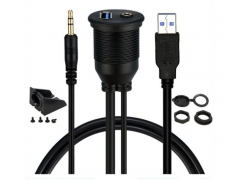 Description:shielded car dashboard panel mount speaker USB A 3.5mm female to USB A 3.5mm male aux audio stereo power extension cable for car